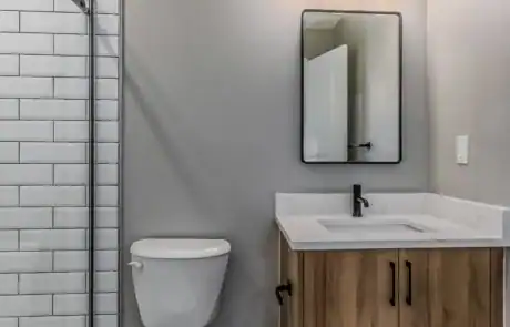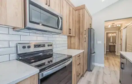 Our Winston Heights backyard suite project began as a “Benjamin” package with 572 square feet of upstairs living space. Looking for more square footage to add an office/flex space, our client requested we expand the size of the living area by more than 50 square feet to accommodate a den area.